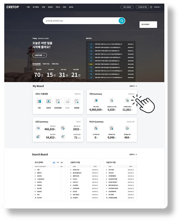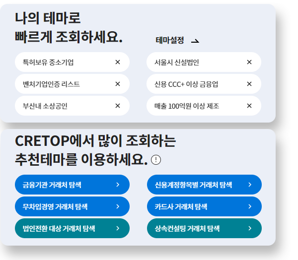 - 추천테마 검색 제공 ex) 공공입찰 참여기업 탐색
