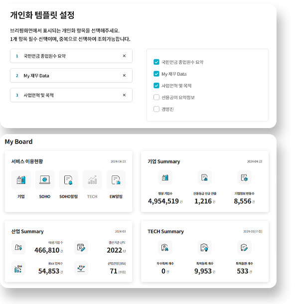 - ※ 일부 SOHO, TECH 서비스의 경우 기업정보와는 별도 상품으로,